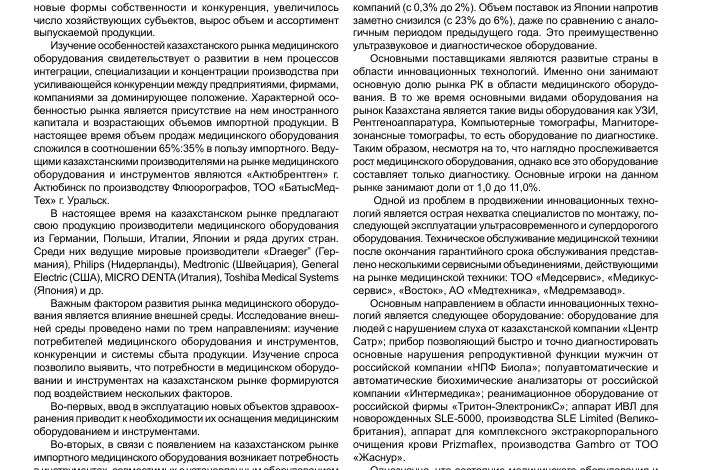 Перспективы развития рынка медицинского оборудования в Казахстане